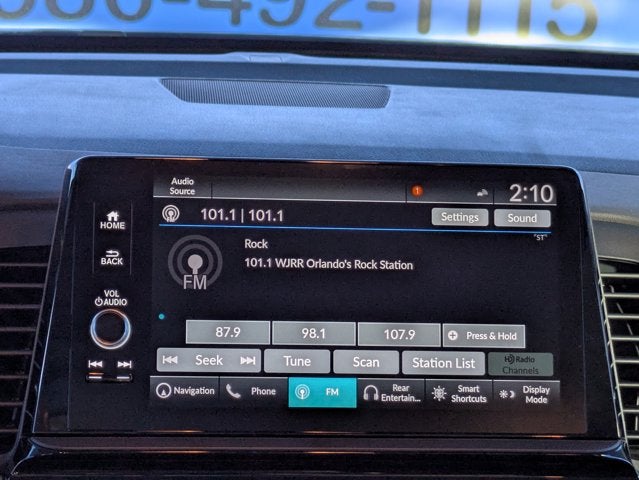 - Radio: 160-Watt AM/FM/HD/SiriusXM Audio System -inc: 7 speakers including subwoofer, 9" color touchscreen display, 7" TFT Meter, multi-zone audio, Bluetooth® HandsFreeLink, Bluetooth® streaming audio, HondaLink, HondaLink subscription services, Speed-Sensitive Volume Compensation (SVC), Radio Data System (RDS), wireless Apple CarPlay compatibility, wireless Android Auto compatibility, Wi-Fi Hotspot capability, 2.5-amp USB smartphone/audio interface, CabinTalk in-car PA system, advanced rear entertainment system w/12.8" high-resolution screen, HDMI interface w/USB-A, headphone jack (3rd row), Honda Satellite-Linked Navigation System w/voice recognition and Honda HD digital traffic, CabinWatch rear seat monitor, illuminated steering wheel-mounted controls and fin-type roof-mounted antenna, All SiriusXM services require a subscription, sold separately by SiriusXM after the trial period, If you decide to continue service, the plan you choose will automatically renew at the then-current rates, Fees and taxes apply, See the SiriusXM customer agreement and privacy policy at www.siriusxm.com for full terms and how to cancel, which includes calling 1-866-635-2349, Available in the 48 contiguous U.S, and D.C, Some services and features are subject to device capabilities and location restrictions, All fees, content and features are subject to change, SiriusXM, Pandora and all related logos are trademarks of Sirius XM Radio Inc, and its respective subsidiaries