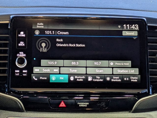- Radio: 215-Watt Audio System w/7 Speakers -inc: subwoofer, 9" color touchscreen, Bluetooth® streaming audio, Speed-Sensitive Volume Compensation (SVC), wireless Apple CarPlay/Android Auto compatibility and 2.5A USB-A data port in front console, HondaLink, Select HondaLink features are complimentary, 36-month complimentary trials are available for security and remote packages, A subscription is required to continue HondaLink services after the trial ends