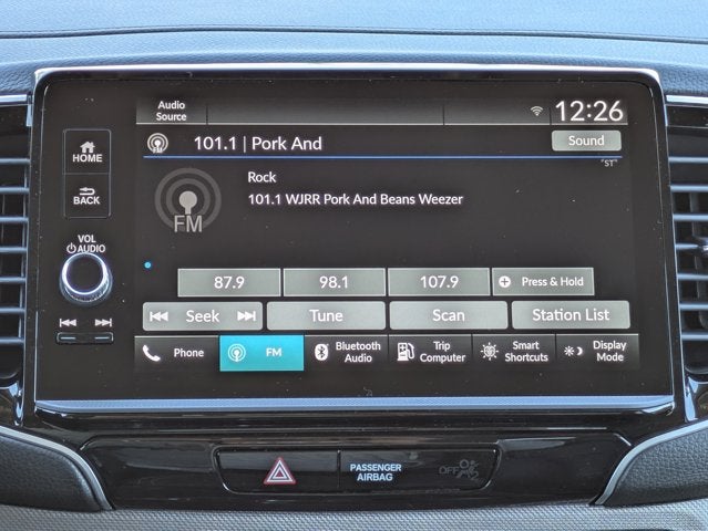 - Radio: 215-Watt Audio System w/7 Speakers -inc: subwoofer, 9" color touchscreen, Bluetooth® streaming audio, Speed-Sensitive Volume Compensation (SVC), wireless Apple CarPlay/Android Auto compatibility and 2.5A USB-A data port in front console, HondaLink, Select HondaLink features are complimentary, 36-month complimentary trials are available for security and remote packages, A subscription is required to continue HondaLink services after the trial ends
