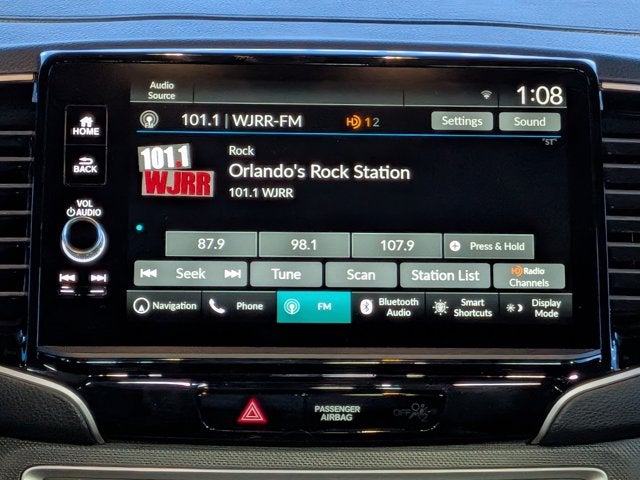 - Radio: 215-Watt Audio System w/7 Speakers -inc: subwoofer, 9" color touchscreen, Bluetooth® streaming audio, Speed-Sensitive Volume Compensation (SVC), wireless Apple CarPlay/Android Auto compatibility, HD Radio and 2.5A USB-A data port in front console, HondaLink, Select HondaLink features are complimentary, 36-month complimentary trials are available for security and remote packages, A subscription is required to continue HondaLink services after the trial ends
