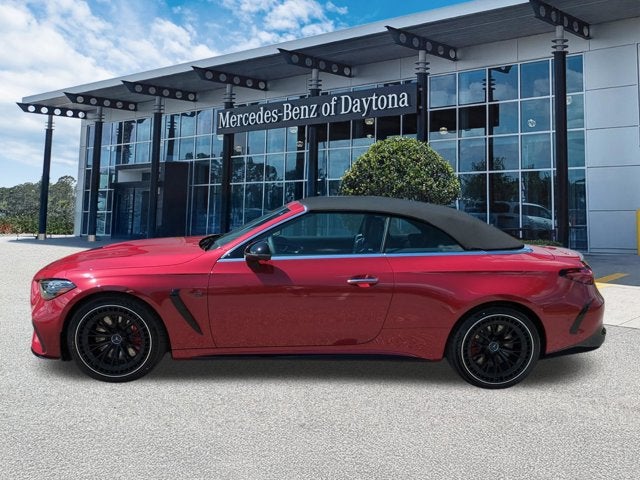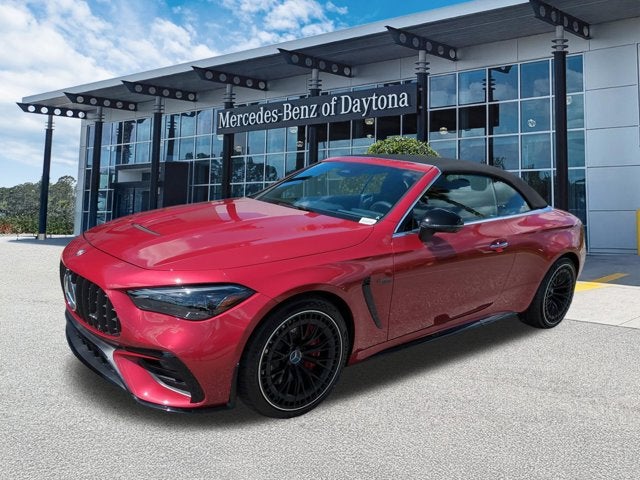 This vehicle Includes the Following Features and Options: AMG® DYNAMIC PLUS Package (Dynamic AMG® Engine Mounts and Red AMG® Performance Composite Brake Caliper), AMG® DYNAMIC PLUS Package with RACE Start, AMG® Night Package II, AMG® Night Package Plus (Badging on Wings and Trunk Lid in Black, Darkened AMG® Specific Radiator Grille, and High-Gloss Black Elements), AMG® Performance Studio Package (AMG® Spoiler Lip), AMG® Style Front & Rear Bumpers, Pinnacle Trim (DIGITAL LIGHT with Projections, Head-Up Display, and MBUX Augmented Reality For Navigation), 11.9" Center Touchscreen Display, 15 Speakers, 3 USB-C Ports, 4-Wheel Disc Brakes, ABS brakes, Active Distance Assist DISTRONIC®, Adaptive suspension, Air Conditioning, Alloy wheels, AM/FM Radio, AM/FM radio: SiriusXM w/360L, Apple CarPlay®/Android Auto®, Auto High-beam Headlights, Auto tilt-away steering wheel, Auto-dimming door mirrors, Auto-dimming Rear-View mirror, Automatic temperature control, Black Fine Structure Center Console, Brake assist, Bumpers: body-color, Child-Seat-Sensing Airbag, Compass, Convertible roof lining, Convertible roof wind blocker, Dashcam, Delay-off headlights, Driver door bin, Driver vanity mirror, Dual front impact airbags, Dual front side impact airbags, Electronic Stability Control, Emergency communication system: Mercedes-Benz Emergency Call Service, Exterior Parking Camera Rear, First Aid Kit, Four wheel independent suspension, Front anti-roll bar, Front Bucket Seats, Front Center Armrest, Front dual zone A/C, Front reading lights, Fully automatic headlights, Garage door transmitter: HomeLink, Glass rear window, HD Radio, Head restraints memory, Heated door mirrors, Heated Front Seats, Heated front seats, Heated Steering Wheel, Illuminated entry, Integrated roll-over protection, Knee airbag, Leather steering wheel, Low tire pressure warning, MB Navigation, MB-Tex/Microfiber Upholstery with Red Stitching, Memory seat, Navigation system: MBUX, Occupant sensing airbag, Outside temperature display, Overhead airbag, Overhead console, Panic alarm, Passenger door bin, Passenger vanity mirror, Piano Black Lacquer Center Console, Power adjustable front head restraints, Power convertible roof, Power door mirrors, Power driver seat, Power passenger seat, Power steering, Power windows, Radio data system, Rain sensing wipers, Rear anti-roll bar, Rear fog lights, Rear window defroster, Remote keyless entry, Security system, SiriusXM Satellite Radio, Speed control, Speed-sensing steering, Split folding rear seat, Spoiler, Sport steering wheel, Steering wheel memory, Steering wheel mounted audio controls, Tachometer, Telescoping steering wheel, Tilt steering wheel, Traction control, Trip computer, Turn signal indicator mirrors, Variably intermittent wipers, Ventilated Front Seats, Wheels: 19" AMG® Multi-Spoke with Black Accents, Wheels: 20" AMG® Black Multi-Spoke Y-Design, Wireless Android Auto®, and Wireless Apple CarPlay®.