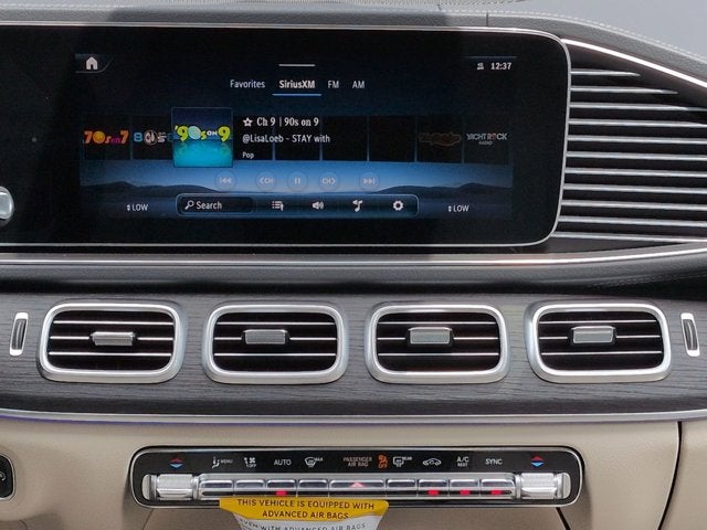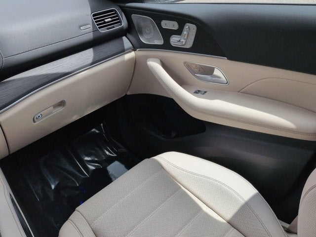 This vehicle Includes the Following Features and Options: 13 Speakers, 3rd row seats: split-bench, 4-Wheel Disc Brakes, 7-Seat Configuration, ABS brakes, Active Multicontour Power Front Seats with Massage, Adaptive suspension, Air Conditioning, Alloy wheels, AM/FM radio: SiriusXM, Apple CarPlay®/Android Auto®, Auto High-beam Headlights, Auto tilt-away steering wheel, Auto-dimming door mirrors, Auto-dimming Rear-View mirror, Auto-leveling suspension, Automatic temperature control, Brake assist, Bumpers: body-color, Child-Seat-Sensing Airbag, Compass, Delay-off headlights, Driver door bin, Driver vanity mirror, Dual front impact airbags, Dual front side impact airbags, Electronic Stability Control, Emergency communication system: eCall Emergency System, Exterior Parking Camera Rear, Four wheel independent suspension, Front anti-roll bar, Front Bucket Seats, Front Center Armrest w/Storage, Front dual zone A/C, Front reading lights, Fully automatic headlights, Garage door transmitter: HomeLink, Head restraints memory, Heated door mirrors, Heated front seats, Heated rear seats, Heated steering wheel, Illuminated entry, Illuminated running boards, Knee airbag, Leather steering wheel, Leather Upholstery, Low tire pressure warning, Memory seat, Navigation system: MB Navigation, Occupant sensing airbag, Outside temperature display, Overhead airbag, Overhead console, Panic alarm, Passenger door bin, Passenger vanity mirror, Power adjustable front head restraints, Power door mirrors, Power driver seat, Power Liftgate, Power moonroof: Panorama, Power passenger seat, Power steering, Power windows, Premium audio system: MBUX, Radio: Burmester® Surround Sound System, Rain sensing wipers, Rear air conditioning, Rear anti-roll bar, Rear dual zone A/C, Rear fog lights, Rear reading lights, Rear seat center armrest, Rear window defroster, Rear window wiper, Reclining 3rd row seat, Remote keyless entry, Security system, Speed control, Speed-sensing steering, Speed-Sensitive Wipers, Split folding rear seat, Spoiler, Steering wheel memory, Steering wheel mounted audio controls, Tachometer, Telescoping steering wheel, Tilt steering wheel, Traction control, Trip computer, Turn signal indicator mirrors, Variably intermittent wipers, Ventilated front seats, Weather band radio, and Wheels: 22" AMG® Multi-Spoke.