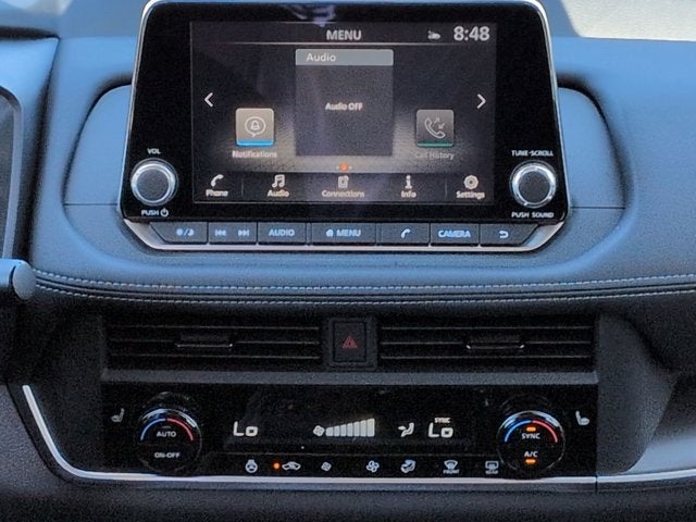 - Radio: AM/FM NissanConnect -inc: 6 speakers plus 2 tweeters, Apple CarPlay, Android Auto, 8" color touch screen display, Bluetooth®, 2 front USB type-C, Wi-Fi hotspot and NissanConnect Services powered by SiriusXM
