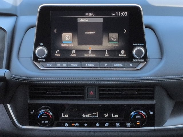 - Radio: AM/FM NissanConnect -inc: 6 speakers plus 2 tweeters, Apple CarPlay, Android Auto, 8" color touch screen display, Bluetooth®, 2 front USB type-C, Wi-Fi hotspot and NissanConnect Services powered by SiriusXM