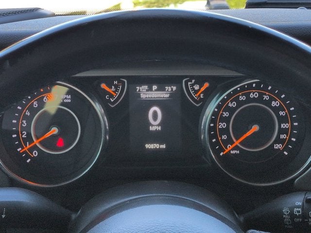This vehicle has the following options in addition to the standard equipment: Quick Order Package 28S Sport S (Automatic Headlamps, Deep Tint Sunscreen Windows, Front 1-Touch Down Power Windows, Leather Wrapped Steering Wheel, Power Heated Mirrors, Remote Keyless Entry, Security Alarm, Speed Sensitive Power Locks, Sun Visors w/Illuminated Vanity Mirrors, and Wheels: 17" x 7.5" Tech Silver Aluminum), 3.45 Rear Axle Ratio, 4-Wheel Disc Brakes, 8 Speakers, ABS brakes, Air Conditioning, AM/FM radio, Brake assist, Cloth Low-Back Bucket Seats, Compass, Delay-off headlights, Driver door bin, Driver vanity mirror, Dual front impact airbags, Dual front side impact airbags, Electronic Stability Control, Front anti-roll bar, Front Bucket Seats, Front Center Armrest w/Storage, Front fog lights, Front reading lights, Integrated roll-over protection, Low tire pressure warning, Non-Lock Fuel Cap w/o Discriminator, Normal Duty Suspension, Occupant sensing airbag, Outside temperature display, ParkView Rear Back-Up Camera, Passenger door bin, Passenger vanity mirror, Power steering, Radio data system, Radio: Uconnect 3 w/5" Display, Rear anti-roll bar, Rear reading lights, Speed control, Split folding rear seat, Steering wheel mounted audio controls, Tachometer, Telescoping steering wheel, Tilt steering wheel, Traction control, Trip computer, Variably intermittent wipers, and Wheels: 17" x 7.5" Black Steel Styled.