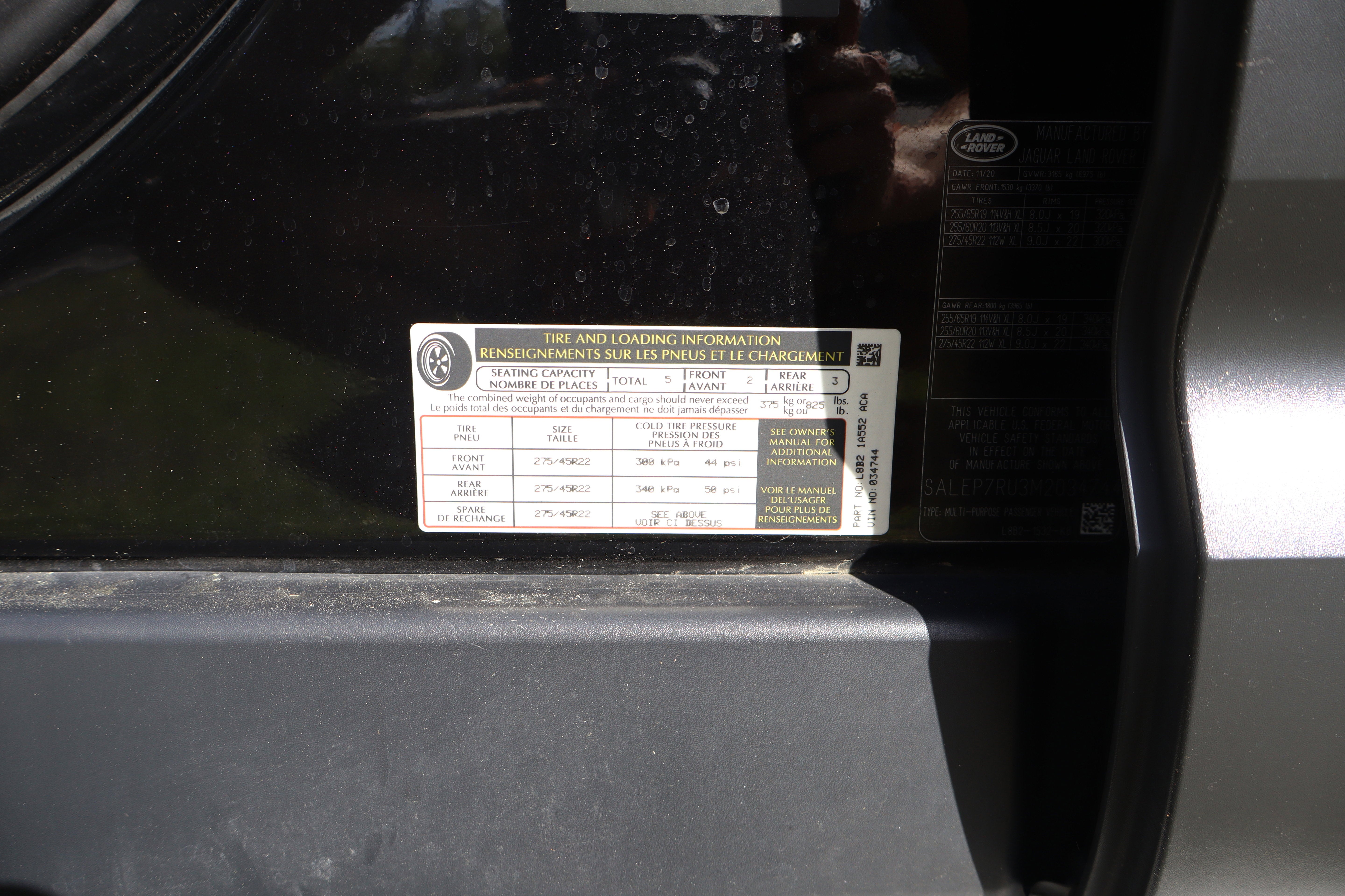 - Front Tire Size: P275/45WR22