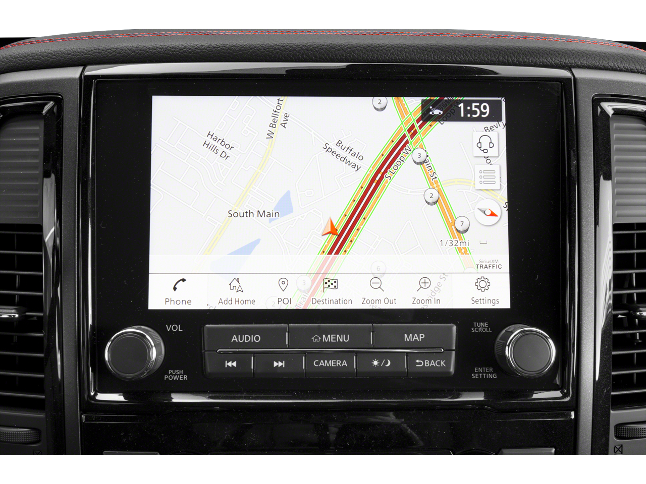 - Radio: NissanConnect w/Navigation -inc: 9" touchscreen display 6 speakers Apple CarPlay Android Auto HD Radio SiriusXM satellite radio SiriusXM Traffic SiriusXM Travel Link w/weather fuel prices movie listings stock info TomTom weather Nissan door to door navigation w/3D building graphics and satellite imagery online POI search over-the-air map updates and online premium traffic information 2-USB (1 type A 1 type C) connection ports for iPod interface and other compatible devices 2 USB A ports (charge only) Bluetooth® hands-free phone system streaming audio via Bluetooth® hands-free text messaging assistant Nissan Connect services WiFi hotspot Nissan voice recognition for navigation and audio Siri Eyes Free and follow me home function
