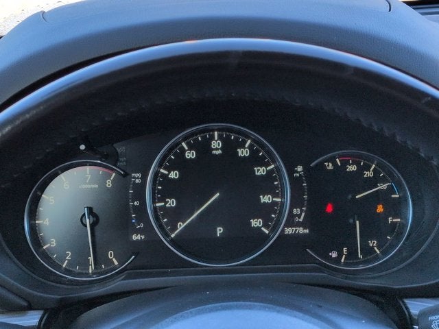 This vehicle has the following options in addition to the standard equipment: 10 Speakers, 4-Wheel Disc Brakes, 4.624 Axle Ratio, ABS brakes, Air Conditioning, Alloy wheels, AM/FM radio: SiriusXM, AppLink/Apple CarPlay and Android Auto, Auto High-beam Headlights, Auto-dimming Rear-View mirror, Automatic temperature control, Brake assist, Bumpers: body-color, Delay-off headlights, Driver door bin, Driver vanity mirror, Dual front impact airbags, Dual front side impact airbags, E911 Automatic Emergency Notification, Electronic Stability Control, Emergency communication system: MAZDA CONNECT, Exterior Parking Camera Rear, First Aid Kit, Four wheel independent suspension, Front anti-roll bar, Front Bucket Seats, Front Center Armrest w/Storage, Front dual zone A/C, Front reading lights, Fully automatic headlights, Garage door transmitter: HomeLink, Heads-Up Display, Heated door mirrors, Heated front seats, Heated rear seats, Heated steering wheel, Heated/Ventilated Front Bucket Seats, Illuminated entry, Infotainment System Voice Command, Leather Seat Trim, Leather Shift Knob, Low tire pressure warning, Memory seat, Multifunction Commander Control, Occupant sensing airbag, Outside temperature display, Overhead airbag, Overhead console, Pandora, Panic alarm, Passenger door bin, Passenger vanity mirror, Power door mirrors, Power driver seat, Power Liftgate, Power moonroof, Power passenger seat, Power steering, Power windows, Premium audio system: Bose, Radio Broadcast Data System Program Information, Radio data system, Radio: AM/FM/HD Audio System, Rain sensing wipers, Rear anti-roll bar, Rear reading lights, Rear seat center armrest, Rear window defroster, Rear window wiper, Remote keyless entry, Retractable Cargo Cover, Roof Rack Side Rails, SMS Text Msg Audio Delivery & Reply, Speed control, Speed-sensing steering, Split folding rear seat, Spoiler, Steering wheel mounted audio controls, Tachometer, Telescoping steering wheel, Tilt steering wheel, Traction control, Trip computer, Turn signal indicator mirrors, Variably intermittent wipers, Ventilated front seats, Wheel Locks, and Wheels: 19" x 7J Aluminum Alloy.