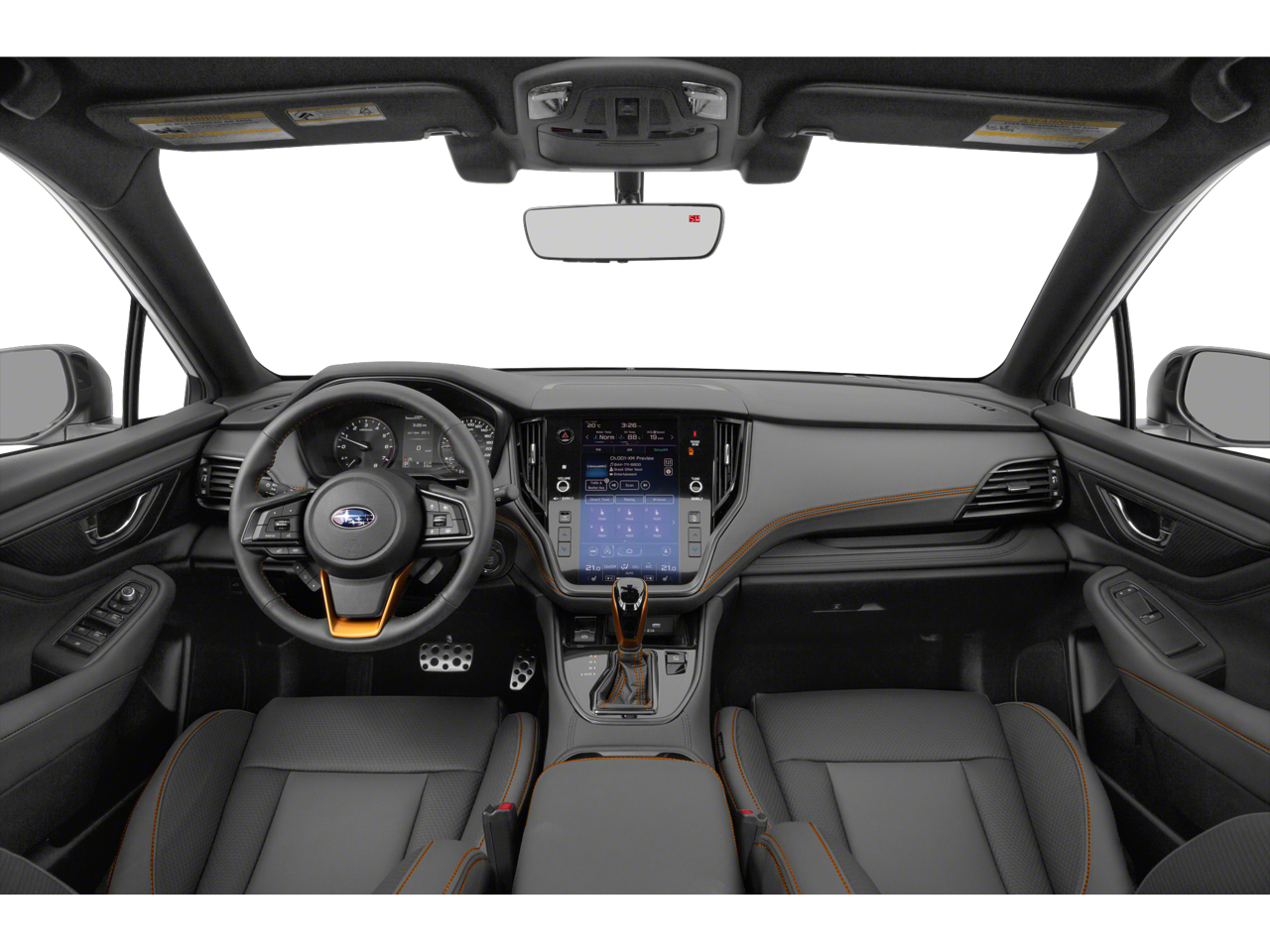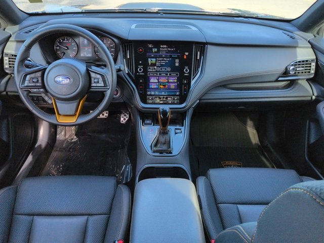 This vehicle has the following options in addition to the standard equipment: Power Moonroof & Navigation & RAB (Power Moonroof, Radio: Subaru STARLINK 11.6" Multimedia Nav System, and Reverse Automatic Braking (RAB) System), Wilderness Package (Auto-Dimming Exterior Mirror w/Approach Light, Cargo Sidewall Protector, Dome Light LED Upgrade, Rear Seat Back Protector, Splash Guards, and Wireless Charger), 4-Wheel Disc Brakes, 4.111 Axle Ratio, 6 Speakers, ABS brakes, Air Conditioning, Alloy wheels, AM/FM radio: SiriusXM, Auto High-beam Headlights, Auto-dimming Rear-View mirror, Automatic temperature control, Brake assist, Carpeted Floor Mats, Compass, Driver door bin, Driver vanity mirror, Dual front impact airbags, Dual front side impact airbags, Electronic Stability Control, Emergency communication system: STARLINK Safety and Security (Subscription Required), Exterior Parking Camera Rear, Four wheel independent suspension, Front anti-roll bar, Front Bucket Seats, Front Center Armrest w/Storage, Front dual zone A/C, Front fog lights, Front reading lights, Fully automatic headlights, Garage door transmitter: HomeLink, Heated door mirrors, Heated Front Bucket Seats, Heated front seats, Heated rear seats, Illuminated entry, Knee airbag, Leather Shift Knob, Leather steering wheel, Low tire pressure warning, Occupant sensing airbag, Outside temperature display, Overhead airbag, Overhead console, Panic alarm, Passenger door bin, Passenger vanity mirror, Power door mirrors, Power driver seat, Power Liftgate, Power passenger seat, Power steering, Power windows, Radio: Subaru STARLINK 11.6" Multimedia Plus Sys, Rear anti-roll bar, Rear seat center armrest, Rear window defroster, Rear window wiper, Remote keyless entry, Roof rack, Security system, Speed control, Speed-sensing steering, Split folding rear seat, Spoiler, STARLINK/Apple CarPlay/Android Auto, StarTex-Trimmed Upholstery, Steering wheel mounted audio controls, Steering Wheel Paddle Shift Control Switches, Tachometer, Telescoping steering wheel, Tilt steering wheel, Traction control, Trip computer, Turn signal indicator mirrors, Variably intermittent wipers, and Wheels: 17" x 7J Black Aluminum Alloy.