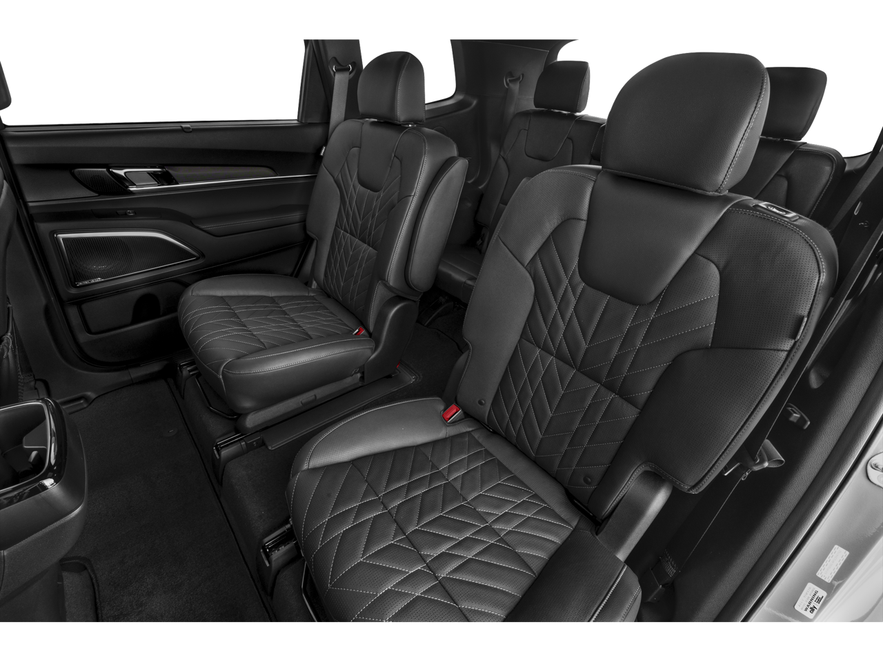 This vehicle has the following options in addition to the standard equipment: 10 Speakers, 3.648 Axle Ratio, 3rd row seats: split-bench, 4-Wheel Disc Brakes, ABS brakes, Air Conditioning, Alloy wheels, AM/FM radio: SiriusXM, Apple CarPlay & Android Auto, Auto High-beam Headlights, Auto-dimming Rear-View mirror, Auto-leveling suspension, Automatic temperature control, Brake assist, Bumpers: body-color, Cargo Tray Seat Back, Carpet Floor Mats, Compass, Delay-off headlights, Driver door bin, Driver vanity mirror, Dual front impact airbags, Dual front side impact airbags, Electronic Stability Control, Emergency communication system: 911 Connect, Exterior Parking Camera Rear, Four wheel independent suspension, Front anti-roll bar, Front Bucket Seats, Front Center Armrest, Front dual zone A/C, Front fog lights, Front reading lights, Fully automatic headlights, Garage door transmitter: HomeLink, harman/kardon® Speakers, Heated & Ventilated Front Bucket Seats, Heated door mirrors, Heated front seats, Heated steering wheel, Hybrid Cargo Net, Illuminated entry, Knee airbag, Leather Seat Trim, Leather Shift Knob, Leather steering wheel, Low tire pressure warning, Memory seat, Navigation System, Occupant sensing airbag, Outside temperature display, Overhead airbag, Overhead console, Panic alarm, Passenger door bin, Passenger vanity mirror, Power door mirrors, Power driver seat, Power Liftgate, Power moonroof, Power passenger seat, Power steering, Power windows, Radio data system, Radio: AM/FM harman/kardon Audio System, Rear air conditioning, Rear anti-roll bar, Rear audio controls, Rear reading lights, Rear side impact airbag, Rear window defroster, Rear window wiper, Reclining 3rd row seat, Remote keyless entry, Roof rack: rails only, Security system, Smart Key w/ Push Button and Remote Start, Speed control, Speed-sensing steering, Split folding rear seat, Spoiler, Steering wheel mounted audio controls, Tachometer, Telescoping steering wheel, Tilt steering wheel, Traction control, Trip computer, Turn signal indicator mirrors, Variably intermittent wipers, Ventilated front seats, and Wheels: 18" x 7.5" Black Finish X-PRO Exclusive.