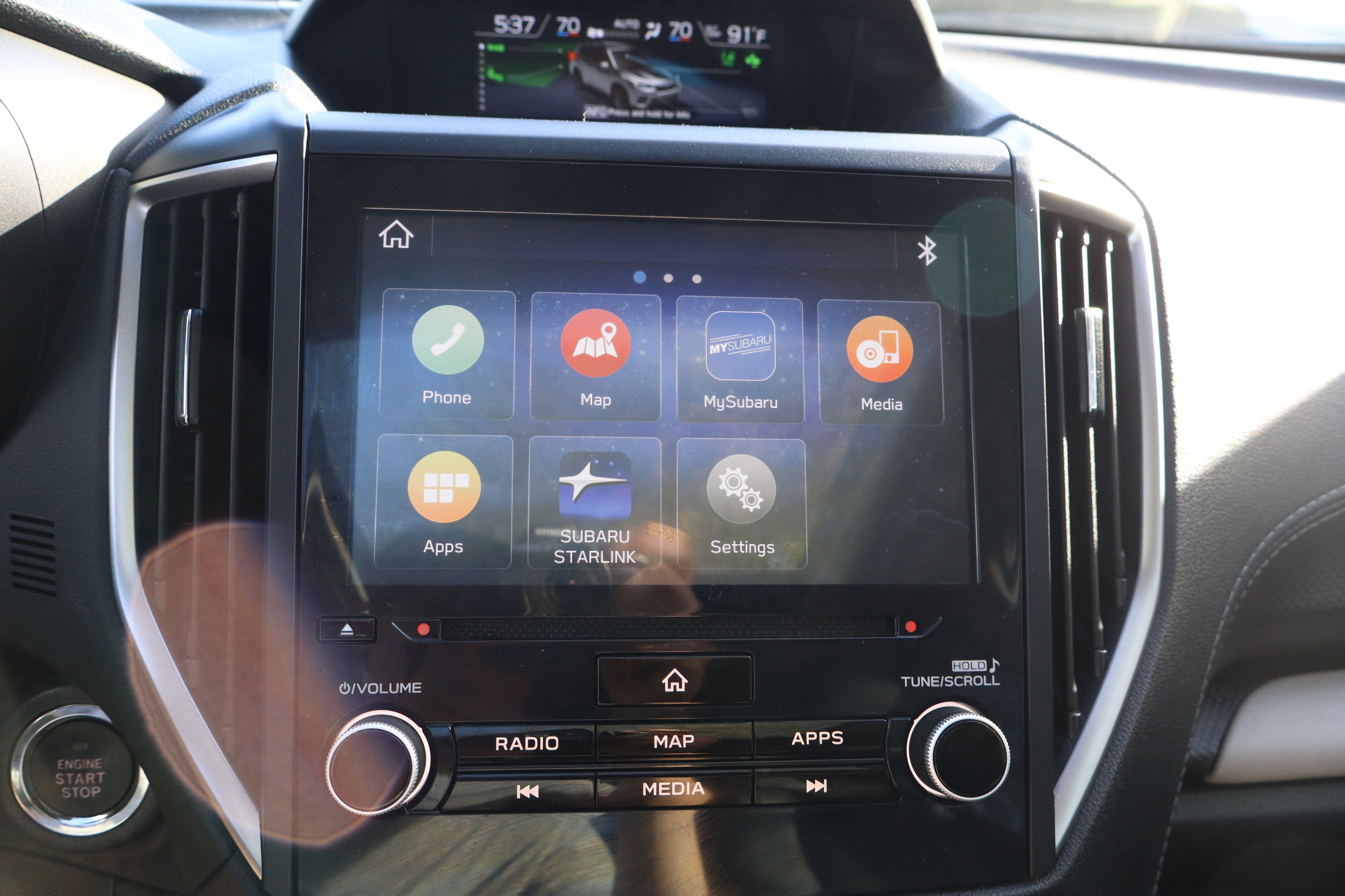 - Radio: Subaru Starlink 8.0" Multimedia Plus System -inc: AM/FM stereo HD Radio w/single-disc CD player, MP3/WMA/CRR/RW file capability, multi-touch gesture high resolution display screen, voice activated controls, Bluetooth® audio streaming, hands-free phone connectivity and hands-free SMS text messaging connectivity (refer to subaru.com for cell phone compatibility), Near Field Communication (NFC), iPod control capability, SiriusXM All Access radio and Travel Link (4 months free trial/subscription required after), smartphone integration for AHA, Android Auto, Apple CarPlay, Pandora and Starlink cloud applications (refer to subaru.com for app availability), USB and Over The Air (OTA) audio system update, steering wheel controls for audio and Bluetooth®, 6 speakers, 3.5mm auxiliary input jack and dual USB A input/charge ports