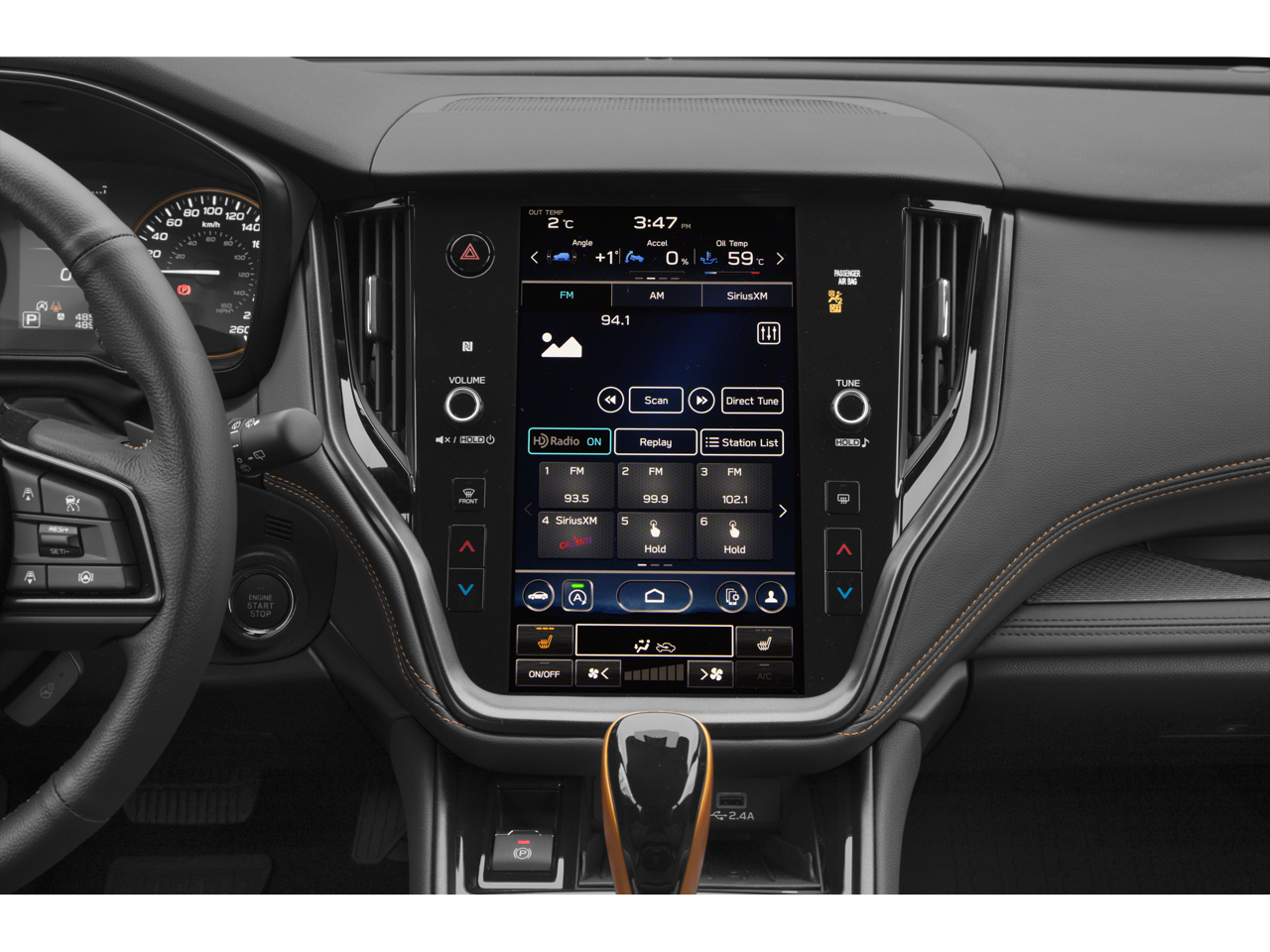 - Radio: Subaru STARLINK 11.6" Multimedia Plus Sys -inc: AM/FM stereo HD Radio valet mode multi-touch gesture high resolution display screen voice activated controls Bluetooth® audio streaming and hands-free phone connectivity w/SMS text messaging (refer to subaru.com for cell phone compatibility) Near Field Communication (NFC) iPod control capability SiriusXM All Access radio (4 months free trial/subscription required after) SiriusXM Travel Link (4 months free trial/subscription required after) smartphone integration: Android Auto and CarPlay w/full screen view and wireless connection and STARLINK cloud applications (refer to subaru.com for app availability) USB and Over The Air (OTA) audio system update 6 speakers illuminated 3.5mm auxiliary input jack and illuminated USB-A and USB-C input/charge ports