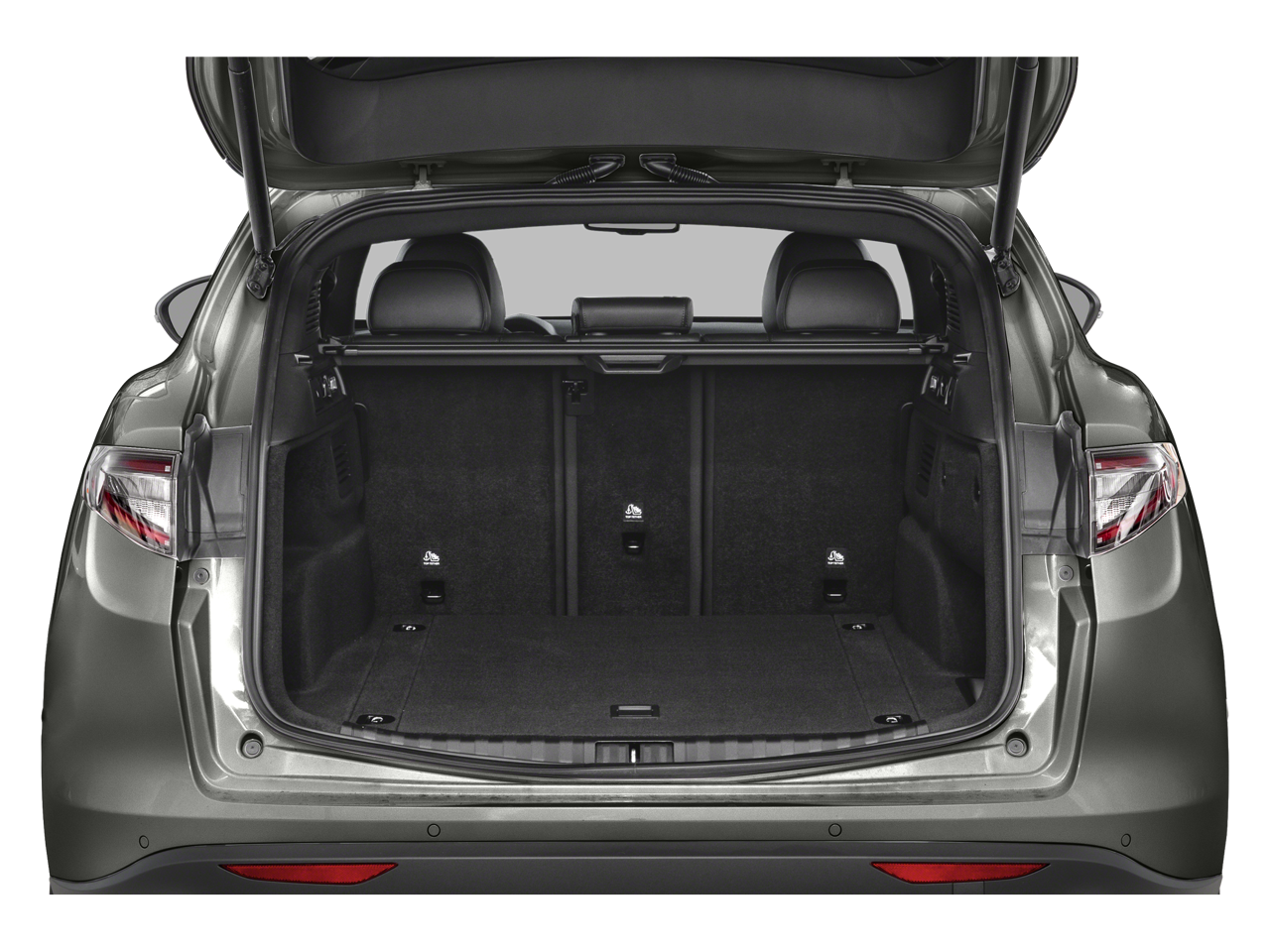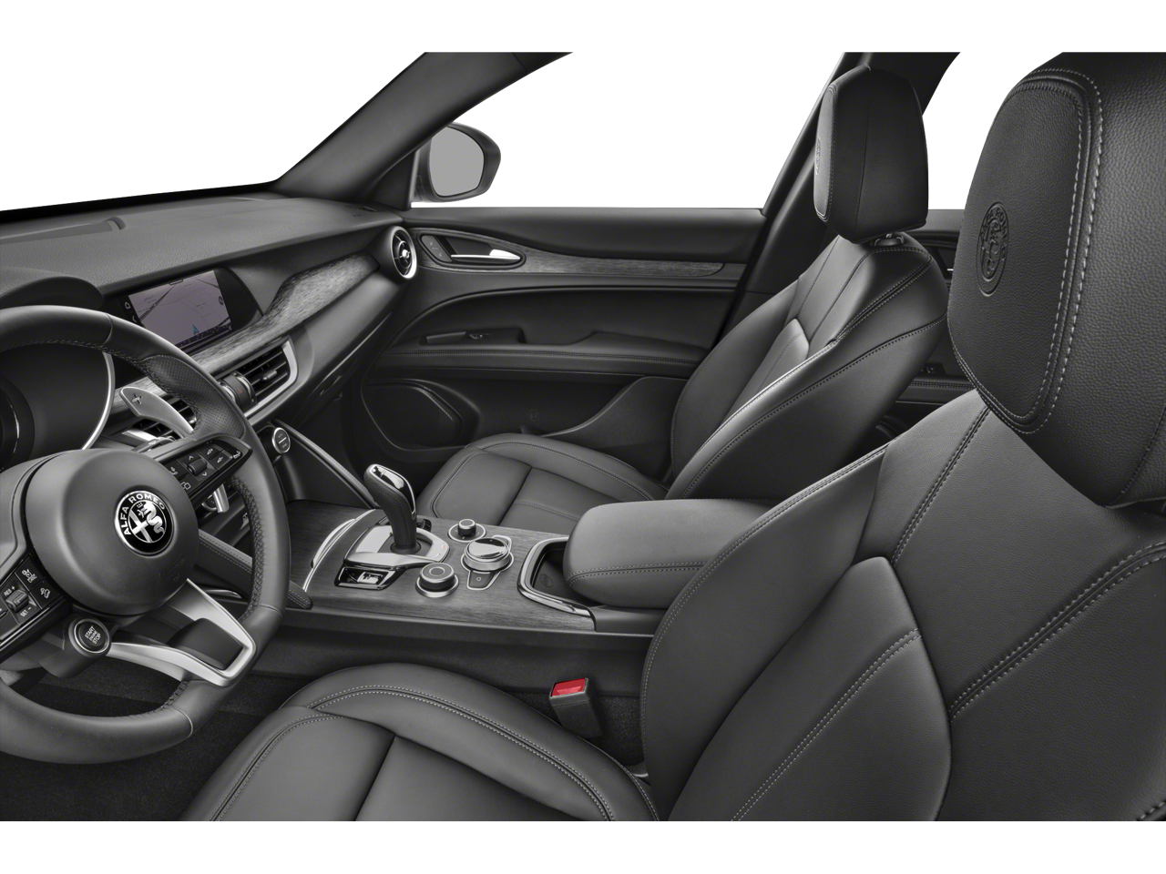 This vehicle has the following options in addition to the standard equipment: Active Assist Plus Package (DISC) (Active Blind Spot Assist, Active Driving Assist System, Driver Attention Alert, Intelligent Speed Assist (ISA), Lane Keep Assist, Traffic Sign Information, and Traffic Sign Recognition), Premium Interior & Sound Package (harman/kardon Premium Audio and Leather Dash & Upper Doors), Quick Order Package 22G Ti, 3.73 Axle Ratio, 4-Wheel Disc Brakes, 8 Speakers, ABS brakes, Air Conditioning, Alloy wheels, AM/FM radio: SiriusXM, Apple CarPlay/Android Auto, Auto High-beam Headlights, Auto-dimming door mirrors, Auto-dimming Rear-View mirror, Automatic temperature control, Brake assist, Bumpers: body-color, Compass, Delay-off headlights, Driver door bin, Driver vanity mirror, Dual front impact airbags, Dual front side impact airbags, Electronic Stability Control, Emergency communication system: Alfa Connect, Four wheel independent suspension, Front anti-roll bar, Front Bucket Seats, Front Center Armrest, Front dual zone A/C, Front reading lights, Fully automatic headlights, Garage door transmitter, Heated door mirrors, Heated front seats, Heated rear seats, Heated steering wheel, High-Intensity Discharge Headlights, Illuminated entry, Knee airbag, Leather Seats, Leather Shift Knob, Leather steering wheel, Low tire pressure warning, Memory seat, Navigation System, Occupant sensing airbag, Outside temperature display, Overhead airbag, Overhead console, Panic alarm, ParkView Rear Back-Up Camera, Passenger door bin, Passenger vanity mirror, Power door mirrors, Power driver seat, Power Liftgate, Power moonroof, Power passenger seat, Power steering, Power windows, Radio data system, Radio: AM/FM/HD 8.8" w/Navigation, Rain sensing wipers, Rear anti-roll bar, Rear audio controls, Rear fog lights, Rear reading lights, Rear seat center armrest, Rear window defroster, Rear window wiper, Remote keyless entry, Security system, Speed control, Speed-sensing steering, Speed-Sensitive Wipers, Split folding rear seat, Spoiler, Sport steering wheel, Steering wheel mounted audio controls, Tachometer, Telescoping steering wheel, Tilt steering wheel, Traction control, Trip computer, Turn signal indicator mirrors, Variably intermittent wipers, Wheels: 19" x 8.0" Sport 5-Hole Aluminum, and Wheels: 20" x 8.5" Sport 5-Hole Aluminum.