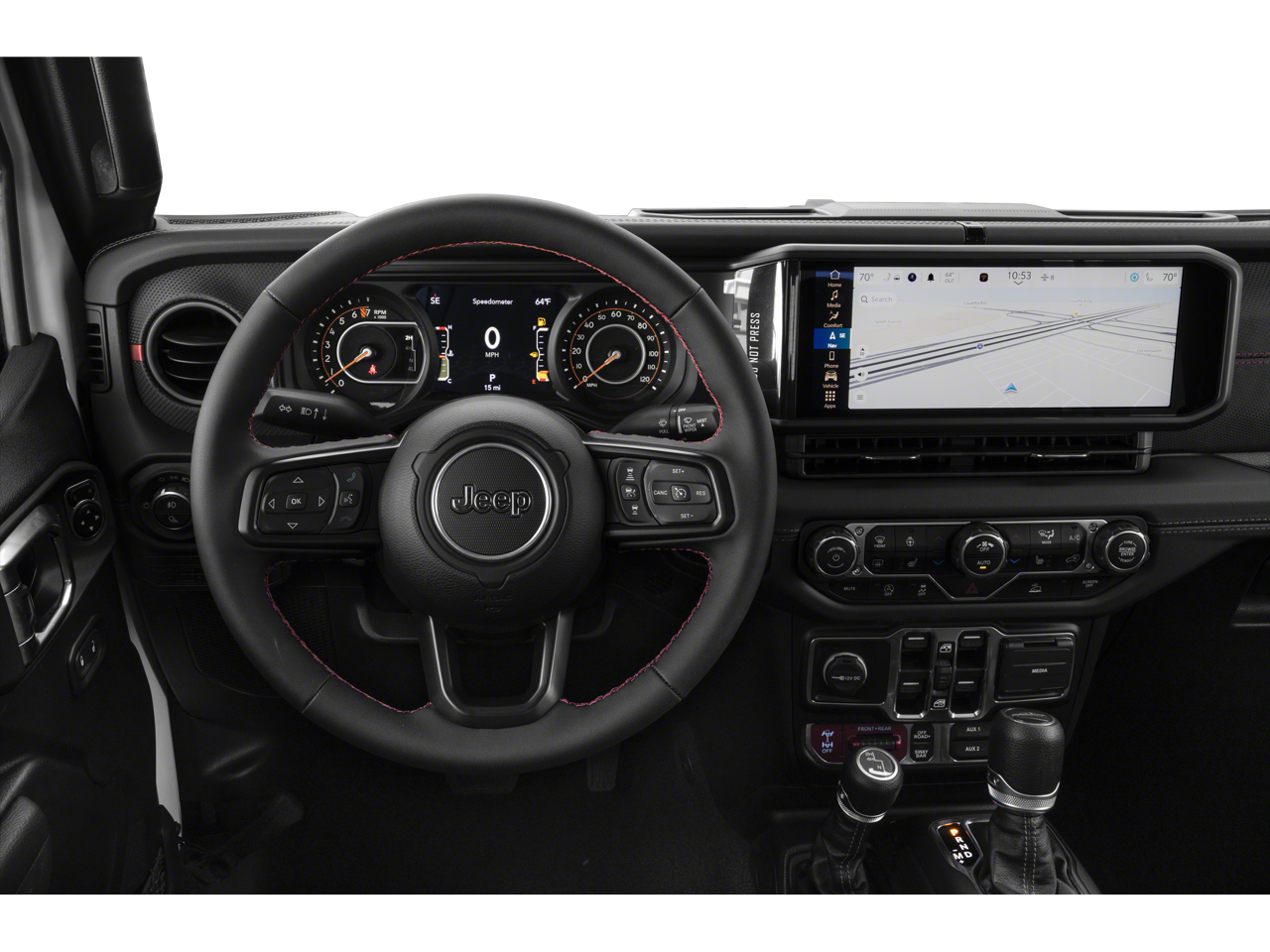 This vehicle has the following options in addition to the standard equipment: Quick Order Package 23Y Rubicon X (4G LTE Wi-Fi Hot Spot, Alpine Premium Audio System, Auto High Beam Headlamp Control, Auto-Dimming Rear-View Mirror, Blind Spot & Cross Path Detection, Bluetooth® Wireless Speaker, Body Color 3-Piece Hard Top, Body Color Rubicon Highline Flare, Connected Travel & Traffic Services, Connectivity - US/Canada, Emergency/Assistance Call, Freedom Panel Storage Bag, Full Length Floor Console Premium Armrest, GPS Antenna Input, HD Radio, Heated Front Seats, Heated Steering Wheel, Integrated Center Stack Radio, Integrated Off-Road Camera, Integrated Voice Command w/Bluetooth®, Leather Wrapped Park Brake Handle, Leather Wrapped Shift Knob, MOPAR Hardtop Headliner, ParkSense Rear Park Assist System, Power 4-Way Driver Lumbar Adjust, Power 4-Way Passenger Lumbar Adjust, Power Adjust 8-Way Driver Seat, Power Adjust 8-Way Front Passenger Seat, Power Adjust Nappa Leather Seats, Premium Door Trim Panel, Radio: Uconnect 5 Nav w/12.3" Display, Rear Armrest w/Cupholder Seat, Rear Sliding Window, Rear Window Defroster, SiriusXM Radio Service, SiriusXM w/360L, Steel Front Bumper, and USB Host Flip), Quick Order Package 24Y Rubicon X, Rubicon X Package, Jeep Combined Certified, 12.3" Touchscreen Display, 4-Wheel Disc Brakes, 4.10 Rear Axle Ratio, 8 Speakers, 97 MPH Vehicle Max Speed Calibration, ABS brakes, Air Conditioning, Alexa Built-In, Alloy wheels, AM/FM radio: SiriusXM with 360L, Apple CarPlay, Apple CarPlay/Android Auto, Automatic temperature control, Brake assist, Cloth Low-Back Bucket Seats, Compass, Delay-off headlights, Driver door bin, Driver vanity mirror, Dual front impact airbags, Dual front side impact airbags, Electronic Stability Control, Emergency communication system: Jeep Connect, Front anti-roll bar, Front Bucket Seats, Front Center Armrest w/Storage, Front dual zone A/C, Front fog lights, Front reading lights, Fully automatic headlights, Google Android Auto, Heated door mirrors, Illuminated entry, Integrated roll-over protection, Low tire pressure warning, MOPAR All-Weather Slush Mats, MOPAR Cold Air Intake System, MOPAR Hard Tri-Fold Tonneau Cover, MOPAR Spray In Bedliner, Occupant sensing airbag, Outside temperature display, Overhead airbag, Panic alarm, Passenger door bin, Passenger vanity mirror, Performance Suspension, Power door mirrors, Power steering, Power windows, Radio data system, Radio: Uconnect 5 w/12.3" Display, Rear anti-roll bar, Rear reading lights, Remote keyless entry, Security system, Speed control, Split folding rear seat, Steering wheel mounted audio controls, Tachometer, Telescoping steering wheel, Tilt steering wheel, Traction control, Trip computer, Variably intermittent wipers, Voltmeter, and Wheels: 17" x 7.5" Machined/Painted Black.