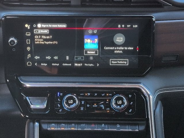 This vehicle has the following options in addition to the standard equipment: Preferred Equipment Group 5SB (120-Volt Bed Mounted Power Outlet, 120-Volt Interior Power Outlet, 2 Charge/Data USB Ports Inside Center Console, 2 Type-C Charge-Only Rear USB Ports, 2 USB Ports, Auto-Locking Rear Differential, Bed View Camera, Bose Premium Series w/12-Speaker System, Chrome Recovery Hooks, Color-Keyed Carpeting Floor Covering, Deep-Tinted Glass, Electric Rear-Window Defogger, Floor-Mounted Center Console, Front Rain-Sensing Wipers, HD Surround Vision, Heated 2nd Row Outboard Seats, Heated Driver & Front Outboard Passenger Seating, Heavy-Duty Air Filter, High Gloss Black Header w/Signature Denali Grille, Hill Descent Control, Hitch View, In-Vehicle Trailering System App, Integrated Trailer Brake Controller, Keyless Open & Start, LED Cargo Area Lighting, Multicolor 15" Diagonal Head-Up Display, MultiPro Tailgate Audio System by Kicker (LPO), OnStar Services Capable, Perimeter Lighting, Power Door Locks, Power Front Passenger Windows w/Express Up/Down, Power Front Windows w/Driver Express Up/Down, Power Rake & Telescoping Steering Column, Power Rear Windows w/Express Down, Power Sliding Rear Window w/Rear Defogger, Power Sunroof, Push Button Start, Rear Cross Traffic Braking, Rear Pedestrian Detection, Rear Wheelhouse Liners, Remote Vehicle Starter System, SiriusXM w/360L Trial Subscription, Spray-On Pickup Bedliner w/GMC Logo, Steering Wheel Audio Controls, Theft Deterrent System (Unauthorized Entry), Trailer Camera Provisions, Trailer Side Blind Zone Alert, Trailer Tire Pressure Monitor System, Ultrasonic Front & Rear Park Assist, Universal Home Remote, Ventilated Driver & Front Passenger Seats, Wi-Fi Hotspot Capable, and Wireless Charging), Trailering Package (Hitch Guidance), 10-Speed Automatic, 4WD, Alpine Umber Leather, 12 Speakers, 16-Way Power Driver Seat Adjuster w/Lumbar, 16-Way Power Passenger Seat Adjuster w/Lumbar, 170 Amp Alternator, 3.23 Rear Axle Ratio, 4-Wheel Disc Brakes, ABS brakes, Adaptive suspension, Air Conditioning, Alloy wheels, AM/FM radio: SiriusXM with 360L, Apple CarPlay/Android Auto, Auto High-beam Headlights, Auto-dimming door mirrors, Auto-dimming Rear-View mirror, Automatic temperature control, Brake assist, Buckle to Drive, Bumpers: body-color, Compass, Delay-off headlights, Denali Premium Suspension w/Adaptive Ride Control, Driver door bin, Driver Memory, Driver vanity mirror, Dual Active Exhaust, Dual front impact airbags, Dual front side impact airbags, Electronic Stability Control, Emergency communication system: OnStar, Enhanced Automatic Emergency Braking, Following Distance Indicator, Forward Collision Alert, Front anti-roll bar, Front Bucket Seats, Front Center Armrest, Front dual zone A/C, Front fog lights, Front Pedestrian Braking, Front reading lights, Front wheel independent suspension, Full Grain Leather Seat Trim, Fully automatic headlights, Garage door transmitter, Genuine wood console insert, Genuine wood dashboard insert, Genuine wood door panel insert, Heads-Up Display, Heated door mirrors, Heated front seats, Heated rear seats, Heated steering wheel, Illuminated entry, IntelliBeam Automatic High Beam On/Off, Low tire pressure warning, Memory seat, Navigation System, Occupant sensing airbag, Outside temperature display, Overhead airbag, Overhead console, Panic alarm, Passenger door bin, Passenger vanity mirror, Power door mirrors, Power driver seat, Power moonroof, Power passenger seat, Power steering, Power windows, Radio data system, Radio: Premium GMC Infotainment Audio System, Rain sensing wipers, Rear reading lights, Rear seat center armrest, Rear step bumper, Rear window defroster, Remote