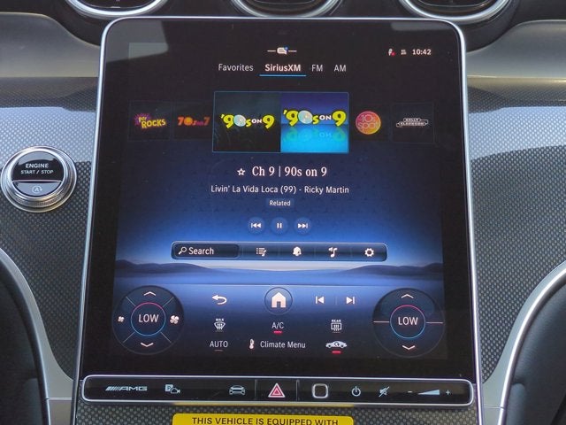 This vehicle Includes the Following Features and Options: 11.9" Center Touchscreen Display, 4-Wheel Disc Brakes, 8 Speakers, ABS brakes, Adaptive suspension, Air Conditioning, Alloy wheels, AM/FM radio: SiriusXM, Apple CarPlay®/Android Auto®, Auto High-beam Headlights, Auto tilt-away steering wheel, Auto-dimming door mirrors, Auto-dimming Rear-View mirror, Auto-leveling suspension, Automatic temperature control, Brake assist, Bumpers: body-color, Child-Seat-Sensing Airbag, Compass, Delay-off headlights, Driver door bin, Driver vanity mirror, Dual front impact airbags, Dual front side impact airbags, Electronic Stability Control, Emergency communication system: eCall Emergency System, Exterior Parking Camera Rear, Four wheel independent suspension, Front anti-roll bar, Front Bucket Seats, Front Center Armrest, Front dual zone A/C, Front reading lights, Fully automatic headlights, Garage door transmitter: HomeLink, Genuine wood dashboard insert, Head restraints memory, Heated door mirrors, Heated front seats, Heated steering wheel, Illuminated entry, Knee airbag, Leather steering wheel, Low tire pressure warning, MB-Tex/Microfiber Upholstery, Memory seat, Occupant sensing airbag, Outside temperature display, Overhead airbag, Overhead console, Panic alarm, Passenger door bin, Passenger vanity mirror, Power adjustable front head restraints, Power door mirrors, Power driver seat, Power Heated Front Bucket Seats, Power Liftgate, Power moonroof: Panoramic, Power passenger seat, Power steering, Power windows, Premium audio system: MBUX, Radio data system, Radio: 3rd Generation MBUX, Rain sensing wipers, Rear anti-roll bar, Rear fog lights, Rear reading lights, Rear seat center armrest, Rear window defroster, Rear window wiper, Remote keyless entry, Security system, SiriusXM Satellite Radio, Speed control, Speed-sensing steering, Split folding rear seat, Spoiler, Sport steering wheel, Steering wheel memory, Steering wheel mounted audio controls, Tachometer, Telescoping steering wheel, Tilt steering wheel, Traction control, Trip computer, Turn signal indicator mirrors, Variably intermittent wipers, Wheels: 20" AMG® Twin 10-Spoke, Wireless Android Auto®, and Wireless Apple CarPlay®.